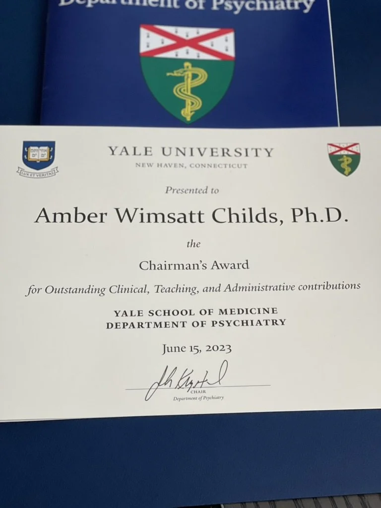 The Chairman’s Award for Clinical, Teaching, and Administrative Excellence, Yale School of Medicine, Psychiatry